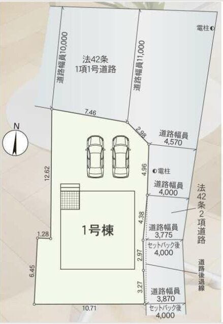 土地面積 公175.17㎡(52.98坪) 接道 北側(公道)幅 約10.0m 間口 約7.40m